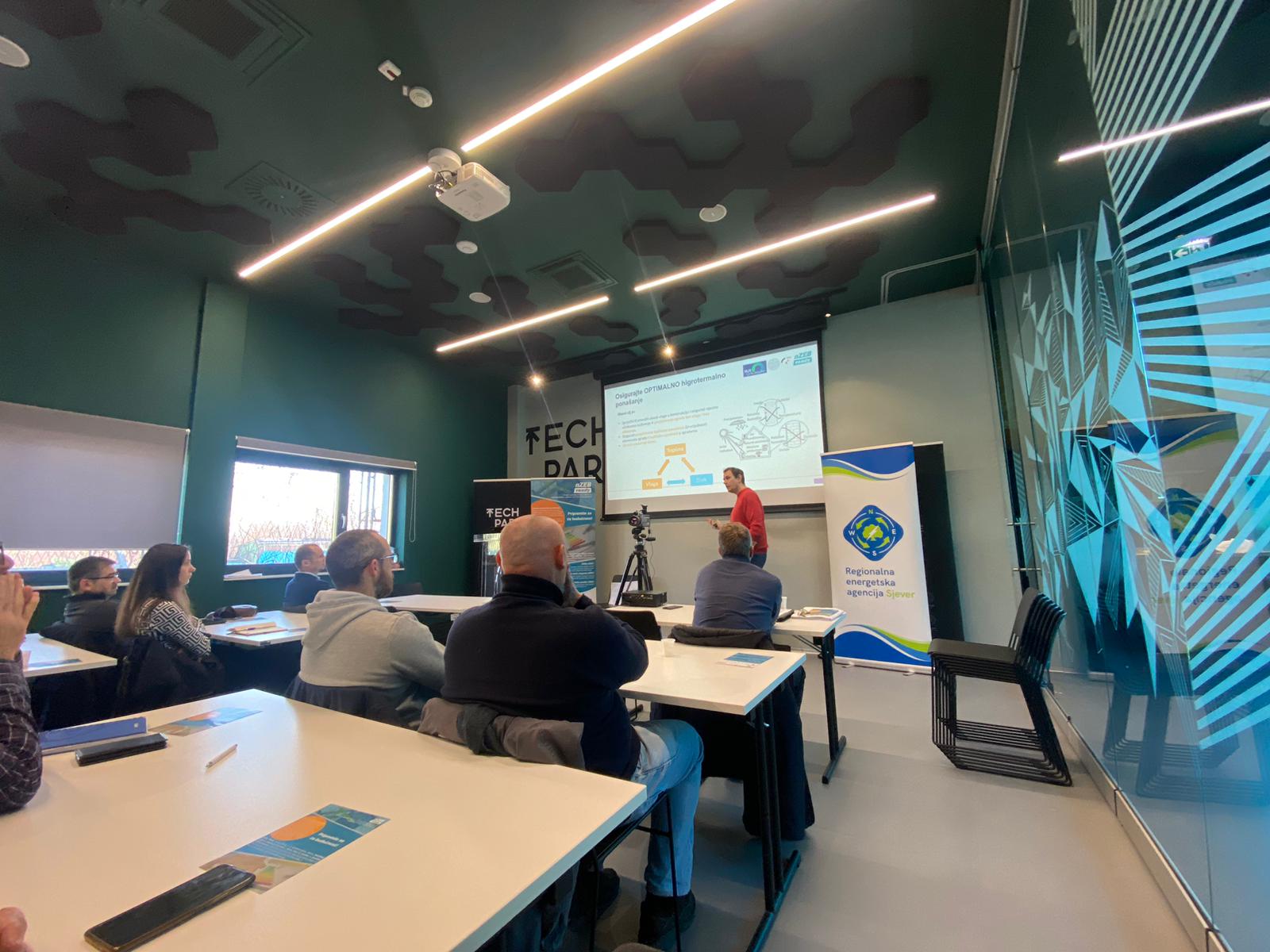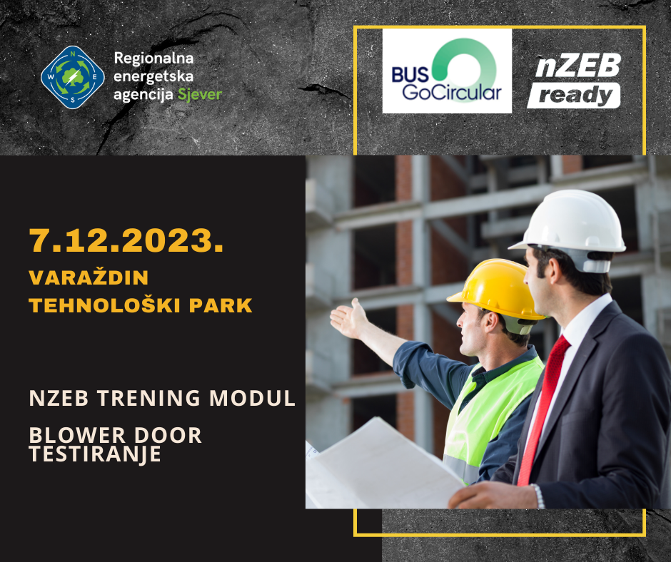 U prostoru Tehnološkog parka Varaždin, 7. prosinca 2023. Regionalna energetska agencija Sjever u suradnji s Građevinskim fakultetom Sveučilišta u Zagrebu, Gradom Varaždinom i Društvom građevinskih inženjera i tehničara grada Varaždina održala je trening modul na temu testiranja zrakopropusnosti u zgradama.