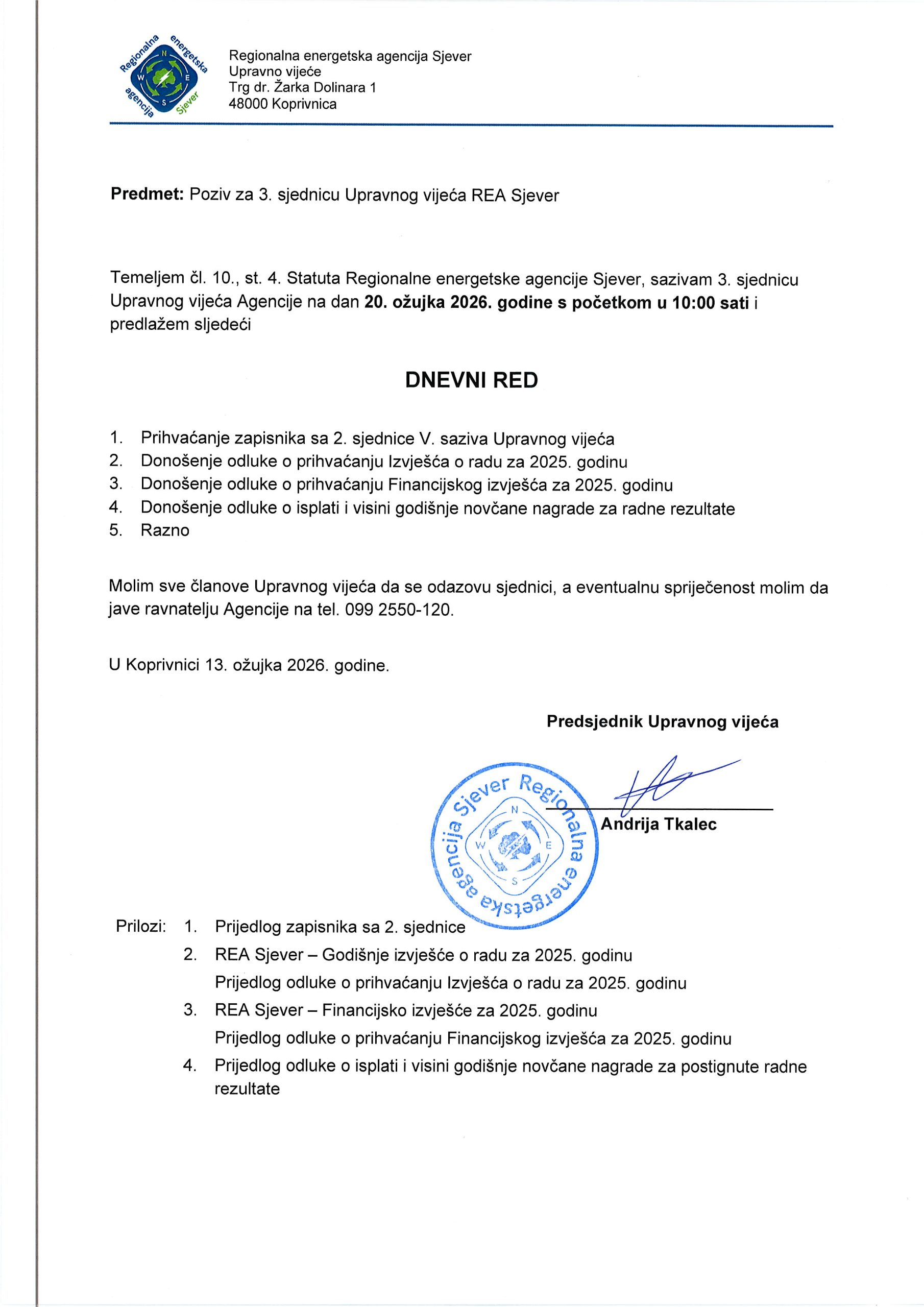 - Poziv i dnevni red 3. sjednica, V. saziv UV